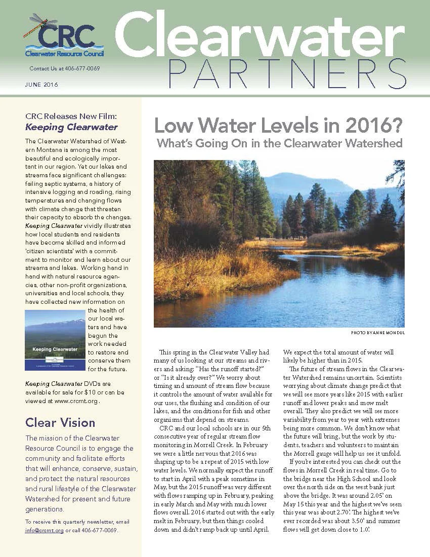 Mailing address: Clearwater Resource Council, P.O. Box 1471, Seeley Lake, MT 59868