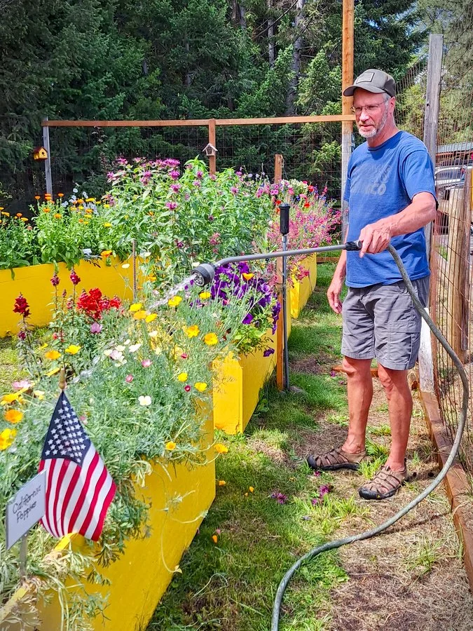 Don Peavey making sure the plants get what they need.