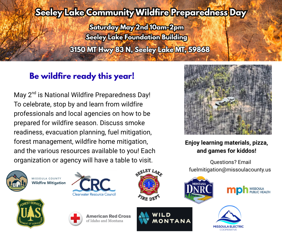 There is an upcoming Community Wildfire Preparedness Day event being led by Missoula County on May 2nd. Please see the attached flyer for more information.